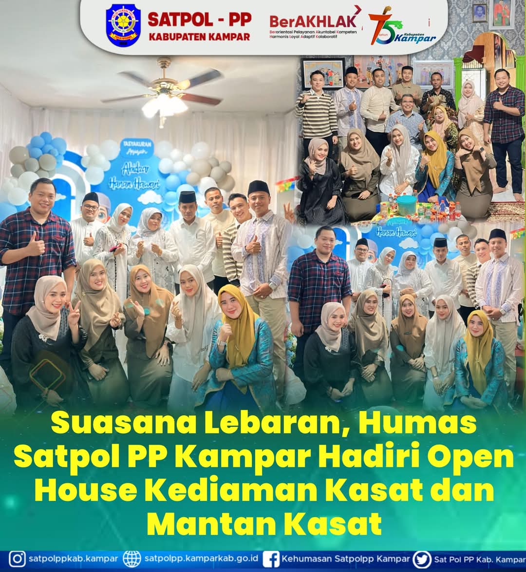 KAMPAR – Idul Fitri 1446 Hijriyah, Tim Hubungan Masyarakat (Humas) Satuan Polisi Pamong Praja (Satpol-PP) Kabupaten Kampar menyambangi kediaman Kepala Satuan Polisi Pamong Praja (Kasatpol-PP) Kampar Arizon, Sabtu (05/04/2025).
