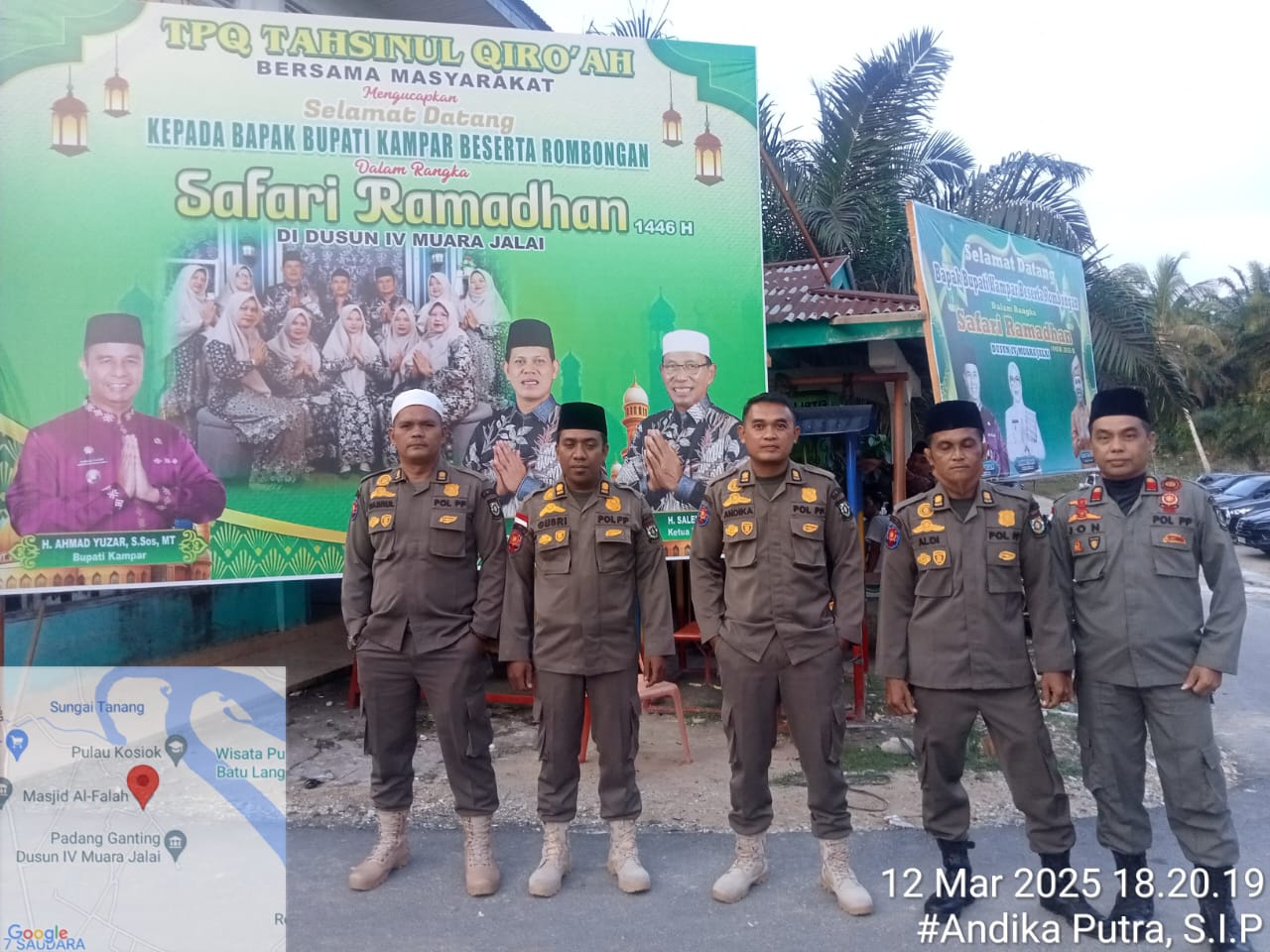 KAMPAR -Pastikan keamanan Bupati Kampar Ahmad Yuzar, Satuan Polisi Pamong Praja (Satpol-PP) Kabupaten Kampar melakukan penjagaan Safari Ramadhan di Desa Muara Jalai Kecamatan Kampar Utara di Masjid Al-falah, Rabu (12/03/2025).